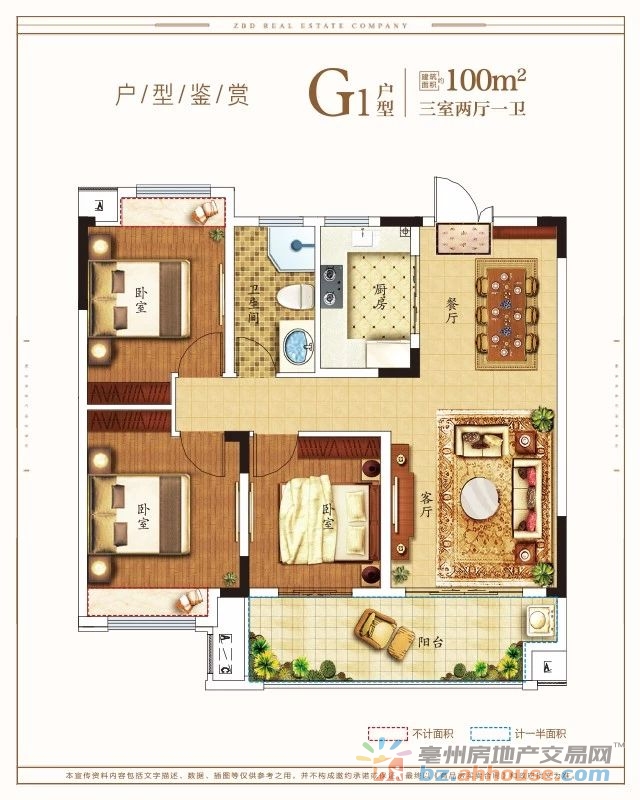 3室2厅1卫 100㎡
