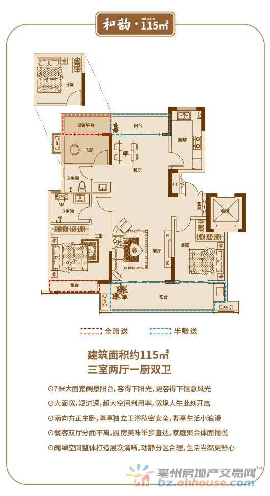 3室2厅1卫 115㎡
