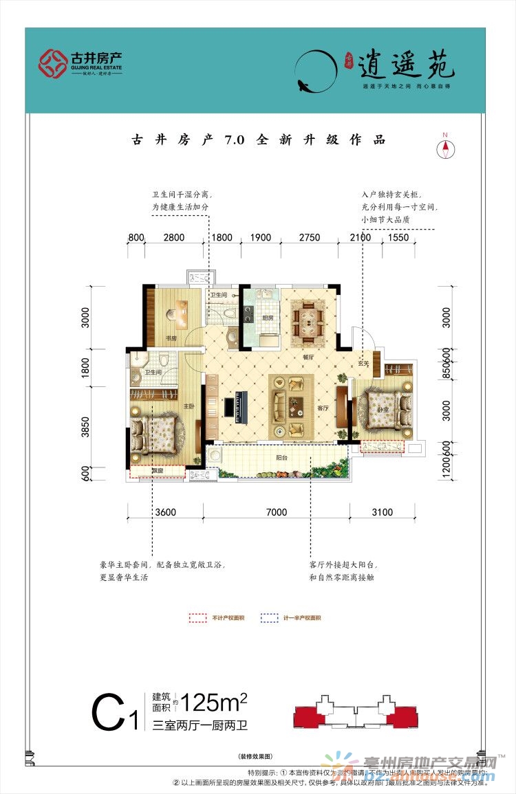 3室2厅2卫 125㎡