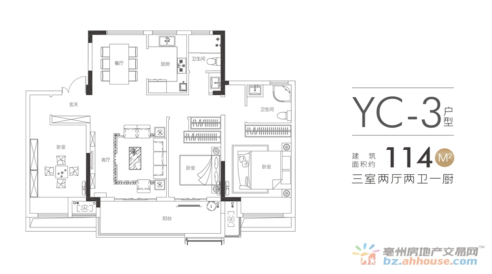 3室2厅2卫 114㎡