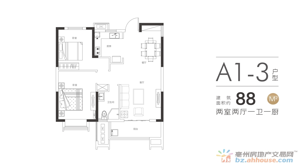 2室2厅1卫 88㎡
