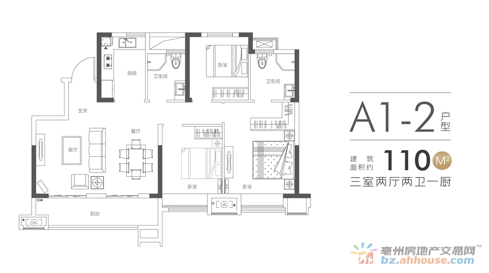 3室2厅2卫 110㎡