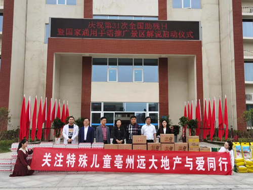 为弘扬扶残助残志愿服务精神,值第三十一次全国助残日到来之际,安徽鸣华集团远大地产亳州城市公司(亳州远大地产)携手亳州市房地产业协会走进亳州市特殊教育学校开展送物资、献爱心活动。